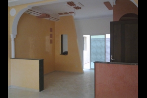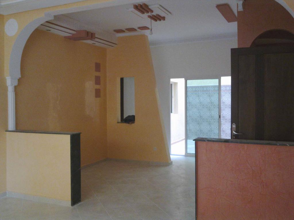 particulier vend tres bel appart neuf titré a ain taoujdate, dans immeuble en r+2 construit sur terrain de 120m2 (3 appartements, 1 par niveau). l'posé de: grand salon, sejour; grande cuisine equipée de placardsen hetre, avec emplacm de machin a lav. debarras(local khzine), 3 chambres avec placards hetre,toilette invité + vasq; salle debain+ toilt, 2 balcons: terrasse (stah), portes en hetre, rideaux electriq, préinstallation chauffage solaire, parabole/chambre+ sejr; peintre s hte gamme ;construction haute qualité. prix appart rez de chaussez à 46kdh