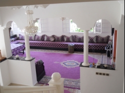 you can book the apartment in the villa (ground floor) or the entire villa. prices published are for the apartment. to book the whole villa write us indicating the number of people. the apartment is furnished and consists of: a kitchen, a large moroccan living room, 1 room with 1 double bed and closets, 1 bedroom with two double beds and closets, a turkish bath (hammam beldi) with bathtub, a bathroom with double sink, toilet, bidet, shower and closets, garage and garden. the whole villa consists of the apartment plus two other floors which include: 1 floor: 1 large living room, a lounge with fireplace, a dining room, a bathroom with double sink, toilet, bidet, shower and closet, a terrace 2 floor: 2 bedrooms each one with 1 double bed (160 cm x 200), closets and balcony, 1 bedroom with 2 double beds (cm. 120 x 200), closets and balcony, large bathroom with double sink, toilet, bidet, shower and closet, a terrace